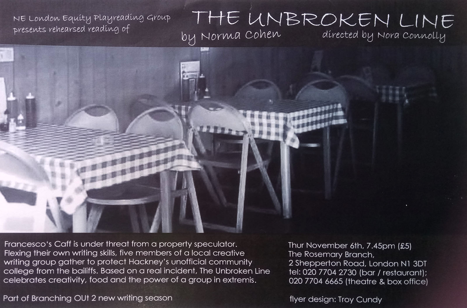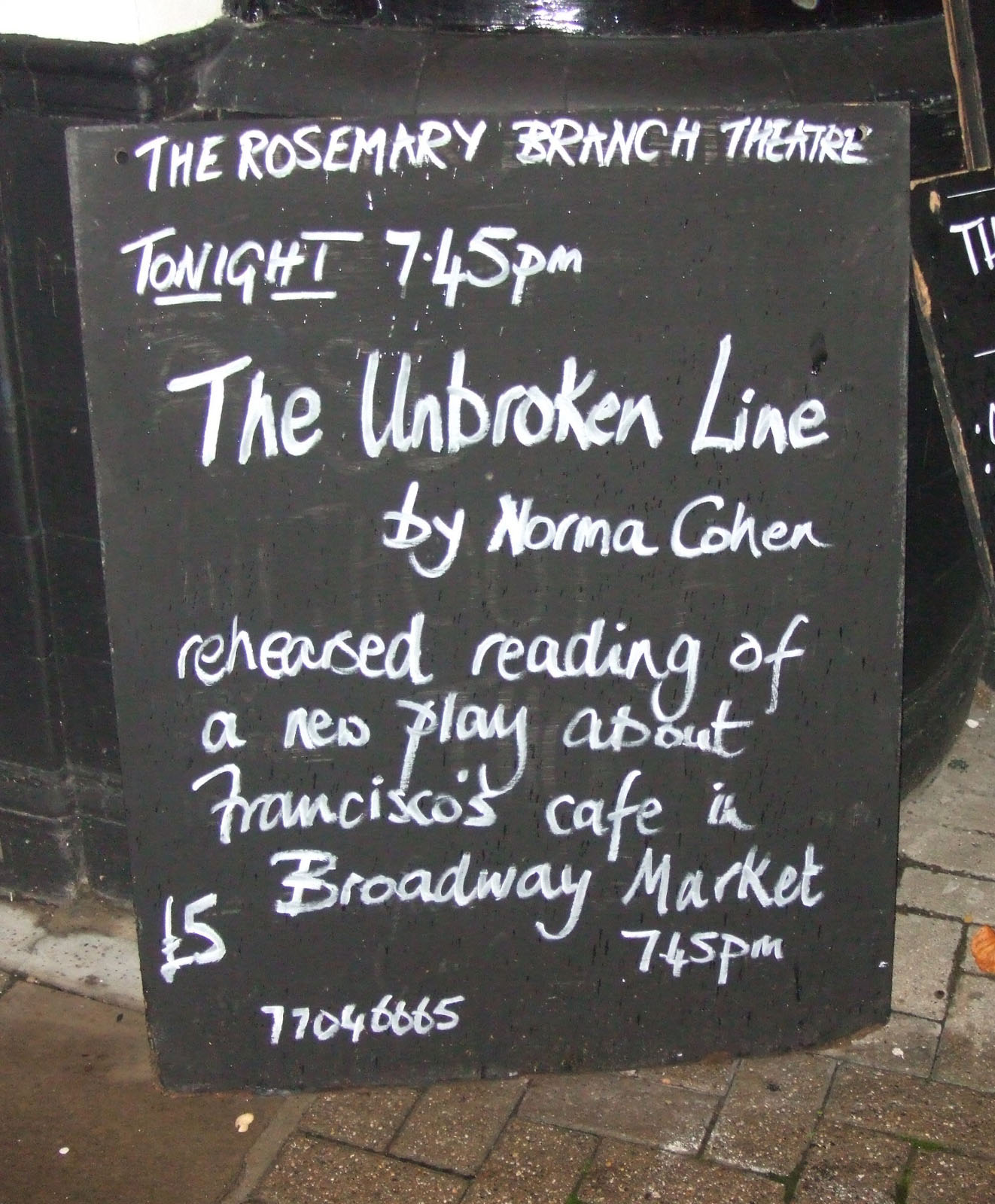 on the gentrification of Broadway Market and ousting of Tony’s popular pizza caff: Theatre Royal, Stratford East & Rosemary Branch 2008, directed by Nora Connolly